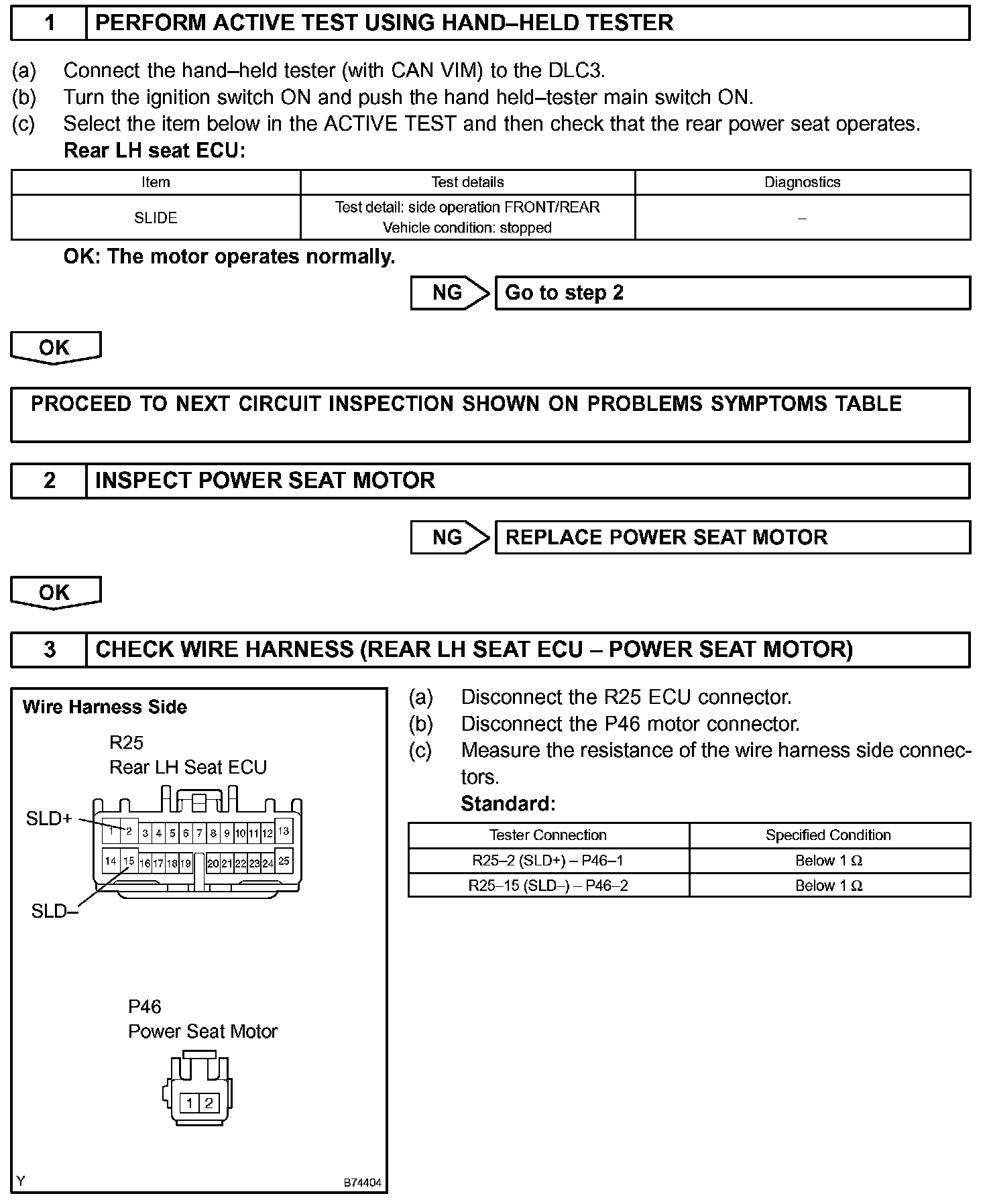 The rear LH seat ECU receives slide position signals from the rear power seat switch to operate the slide power seat motor.