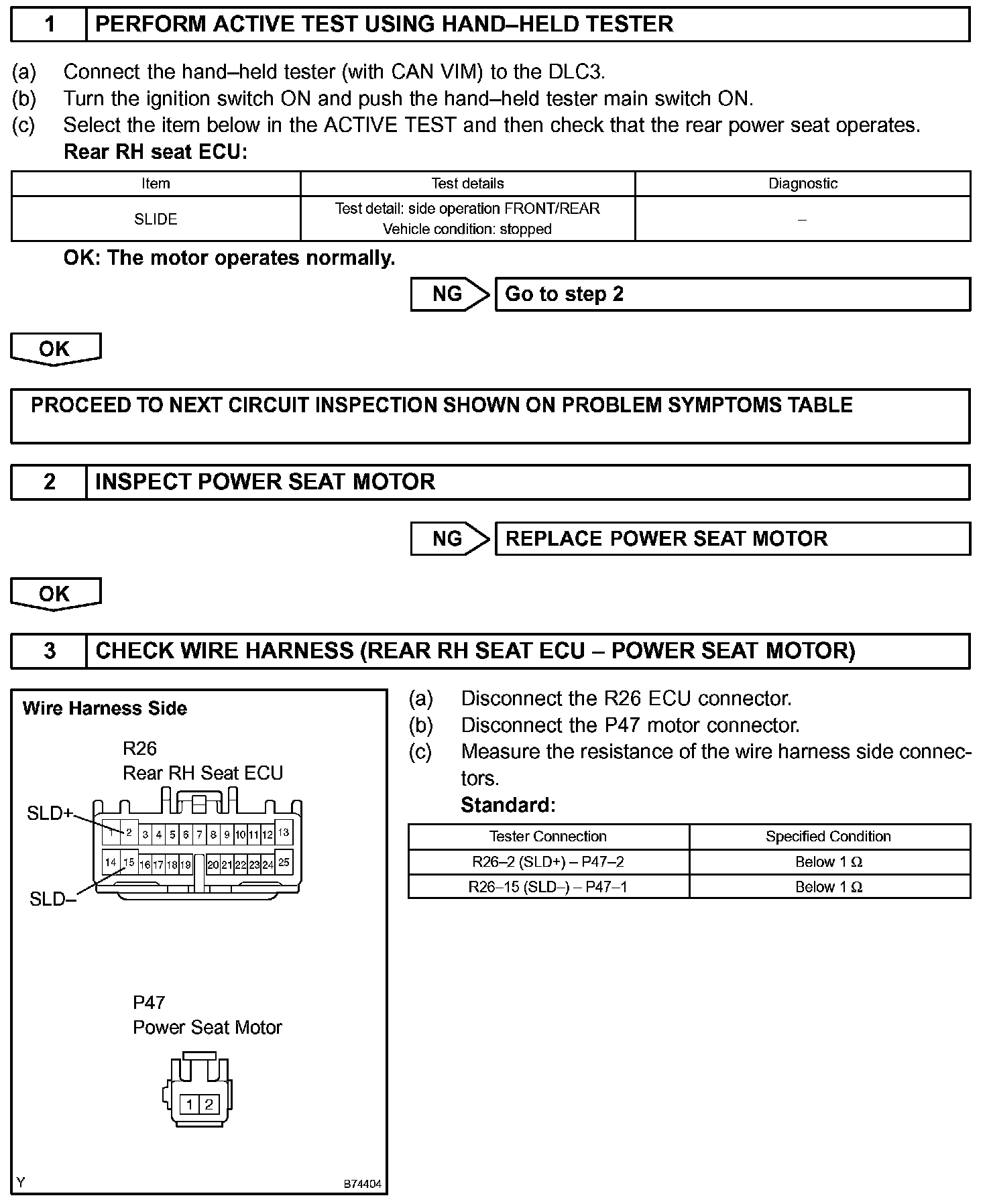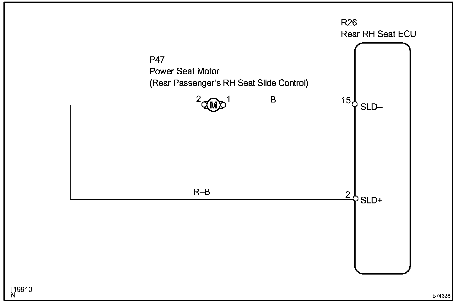 The rear RH seat ECU receives slide position signals from the rear power seat switch to operate the slide power seat motor.