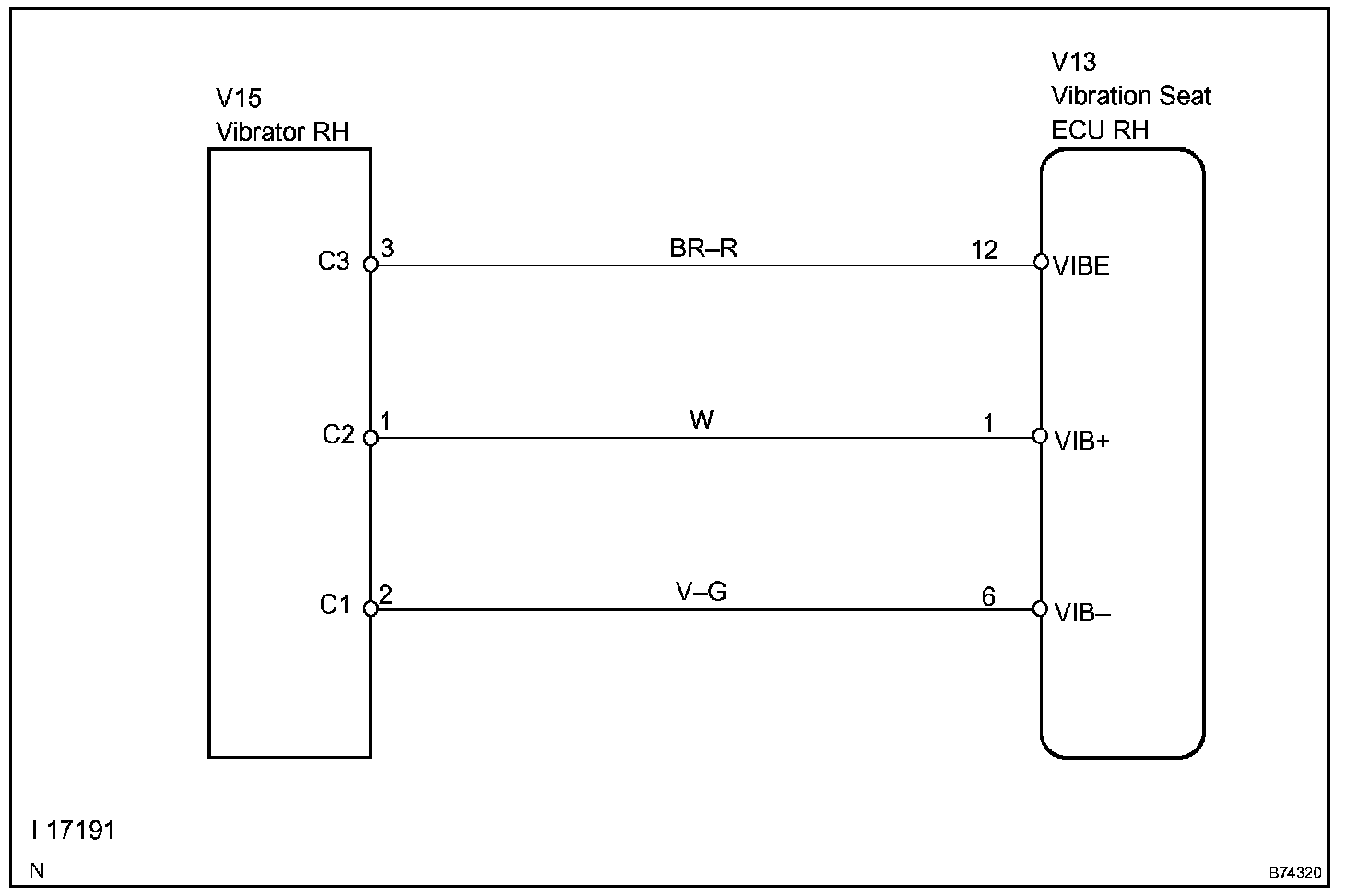The rear RH seat ECU sends a vibration seat function signal to the vibrator through the vibration seat ECU.
