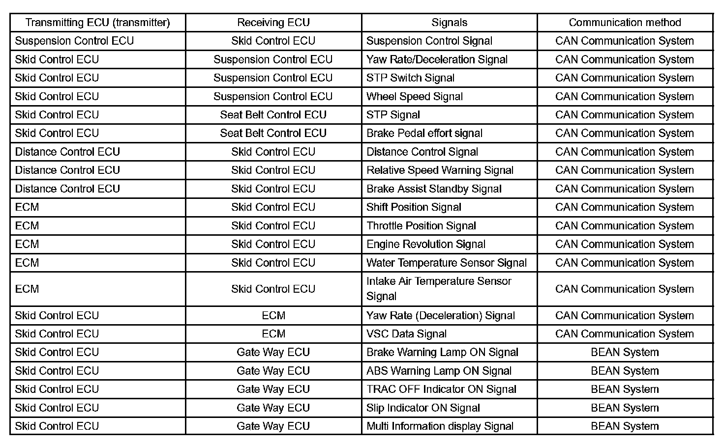 - The yaw rate sensor and deceleration sensor are combined and in a single unit. This unit communicates with the skid control ECU through CAN communication.