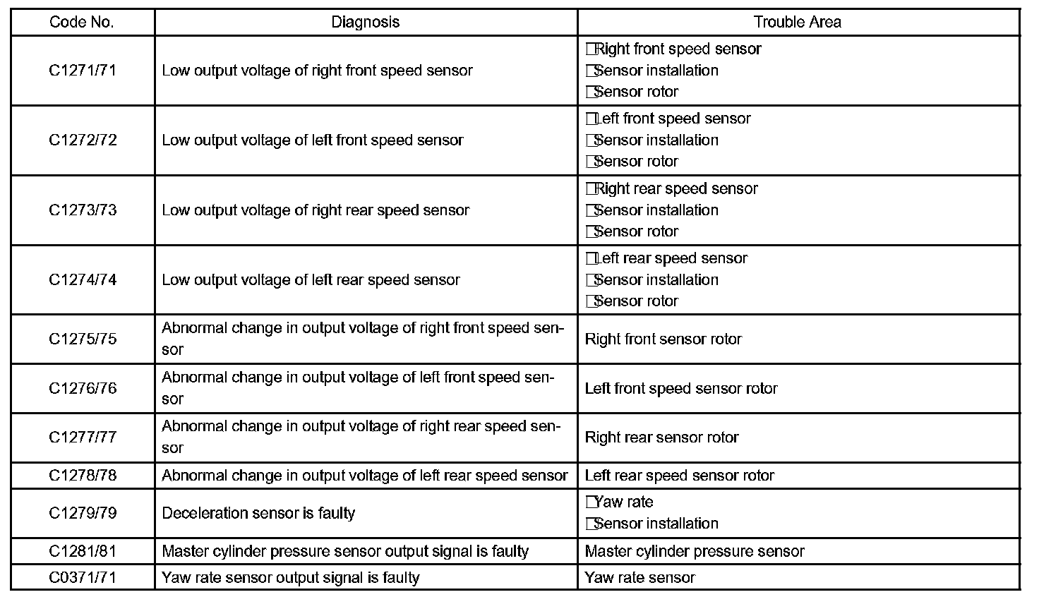 - Before the speed sensor check, the yaw rate sensor, deceleration sensor and master pressure sensor checks should be completed.