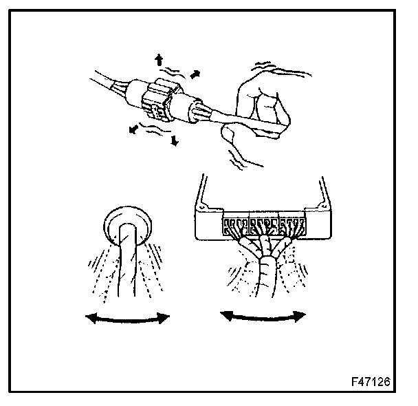 HINT: The connector and/or wire harness will be in momentary interruption (open circuit) if the chart fluctuates. Repair or replace connector and/or wire harness as one of them is faulty.