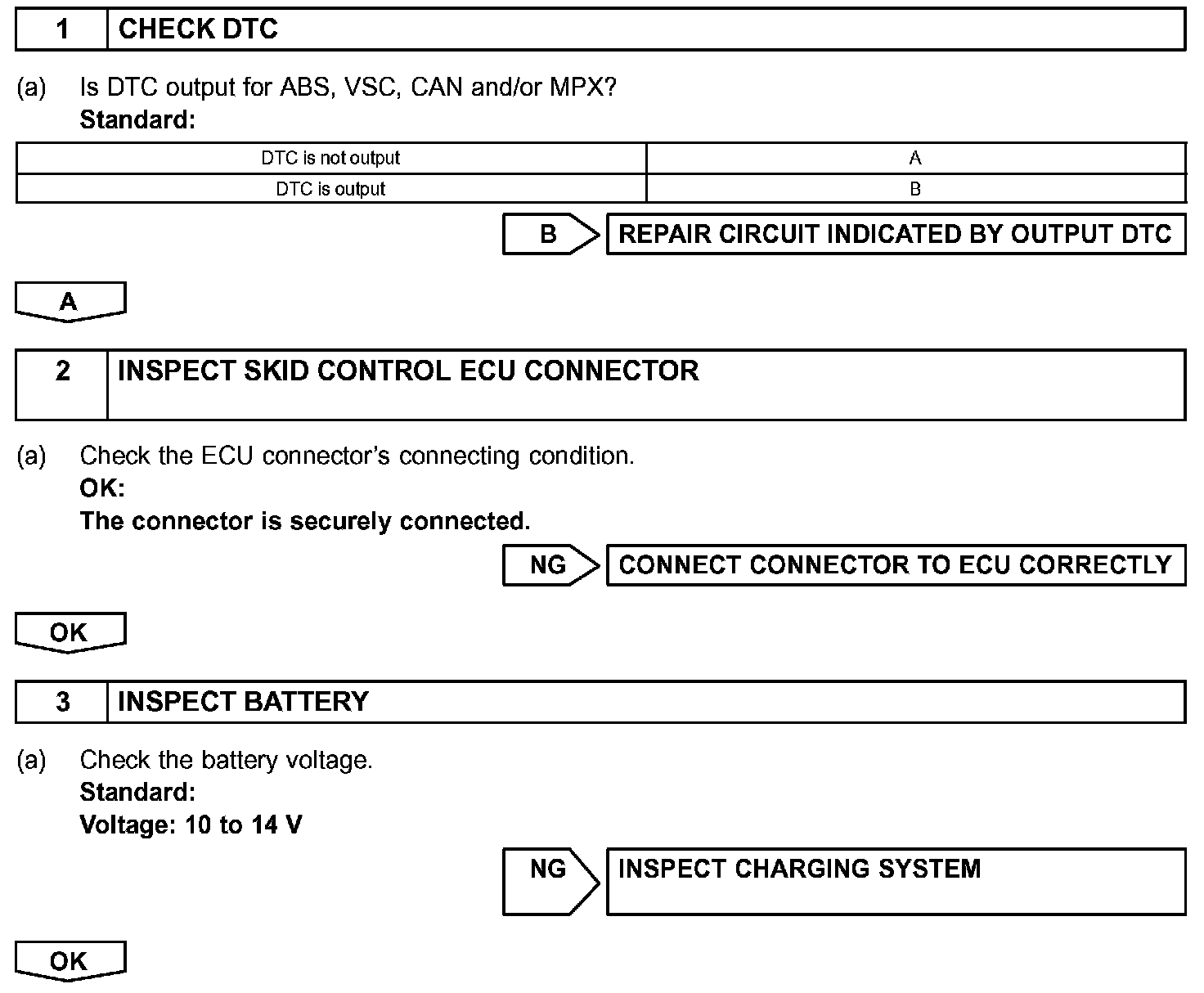 CIRCUIT DESCRIPTIONIf the ECU stores DTC, the VSC warning light comes on in the combination meter.
