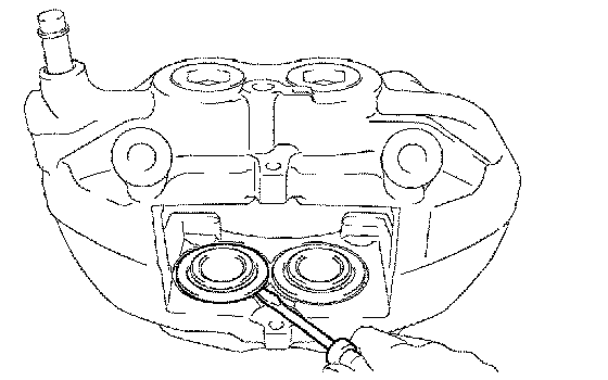 a. Using a screwdriver, remove the 4 piston seals from the disc brake cylinder assembly.