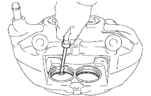 NOTICE: Do not install the piston forcibly in the disc brake cylinder.