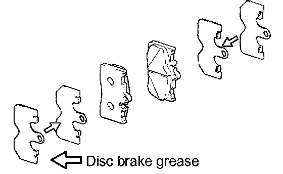 b. Apply disc brake grease to the anti squeal shims and install them to each pad.
