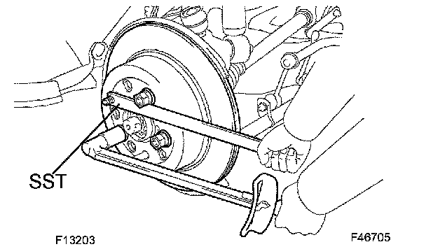 HINT: When replacing the rear disc with a new one, select the installation position where the rear disc has the minimum runout.