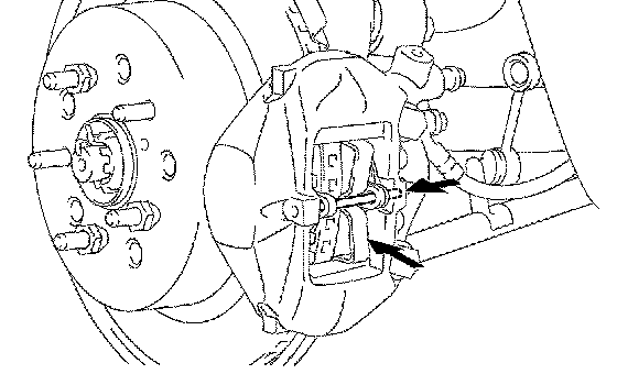 a. Remove the 2 bolts and the disc brake cylinder assembly rear from the knuckle.