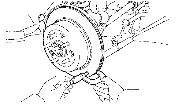 a. Remove the rear disc brake bleeder plug from the disc brake cylinder assembly rear.