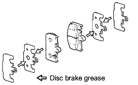 b. Apply disc brake grease to the anti squeal shims and install them to each pad.