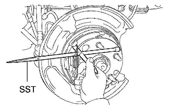 5. REMOVE PARKING BRAKE SHOE RETURN TENSION SPRING