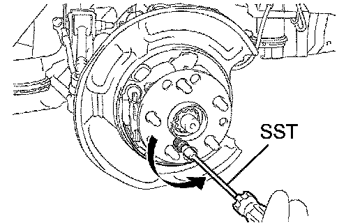 b. Turn the shoe adjuster and expand the shoes until the disc locks.