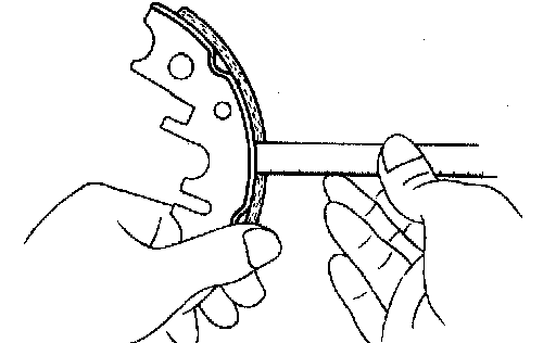 a. Apply chalk to the inside surface of the disc, then grind down the brake shoe lining to fit. If the contact between the disc and the brake shoe lining is improper, repair it using a brake shoe grinder or replace the brake shoe assembly.