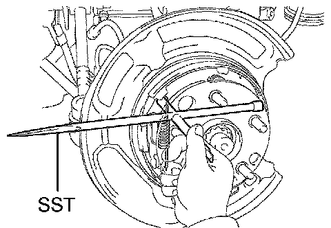 a. Using SST, remove the cap, shoe hold-down spring and pin.