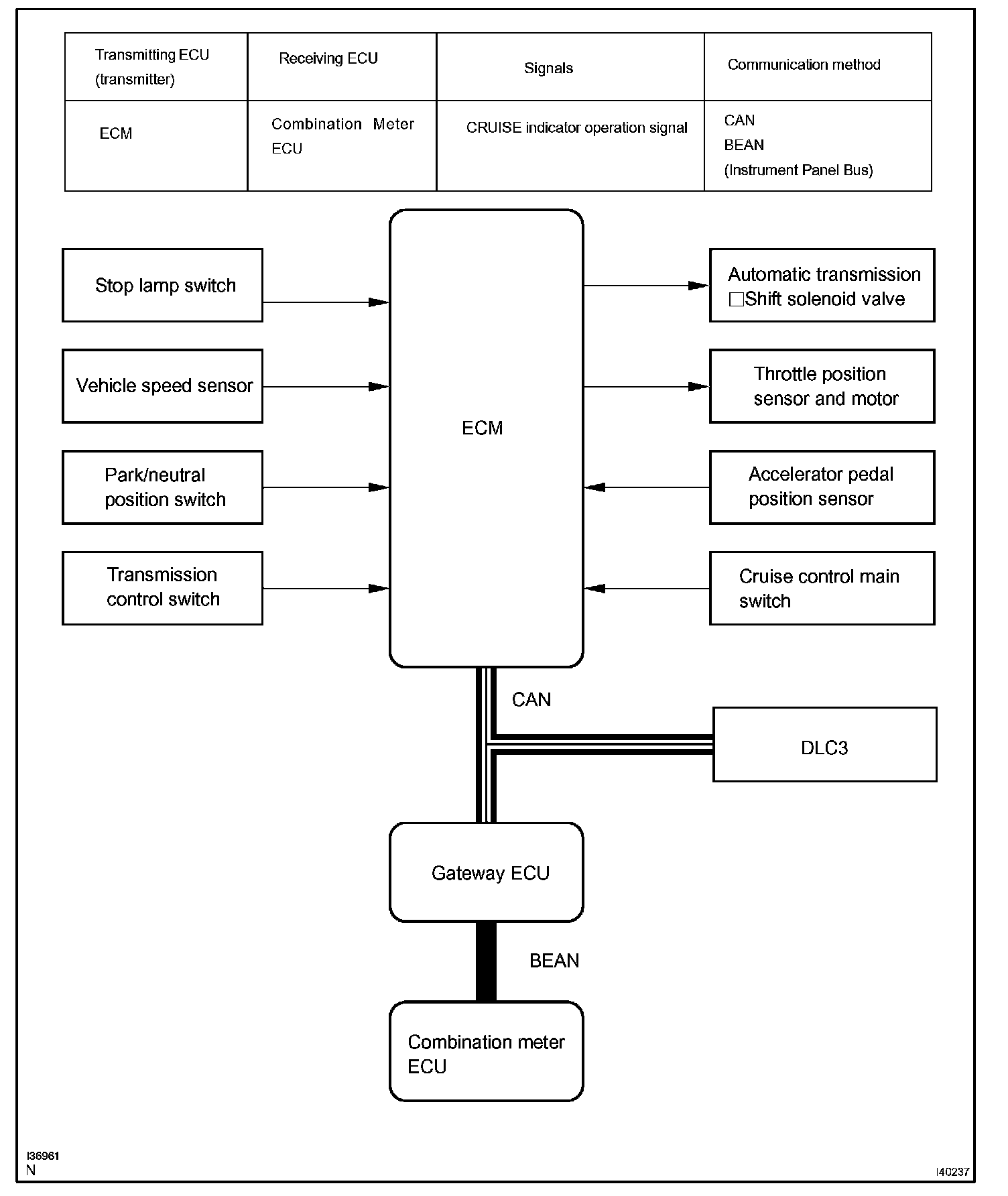 - The ECM cancels the cruise control system when it detects that the shift position is changed from D (6th, 5th or 4th gear) to N (3rd, 2nd or 1st gear), based on the park/neutral position switch assy signal.
