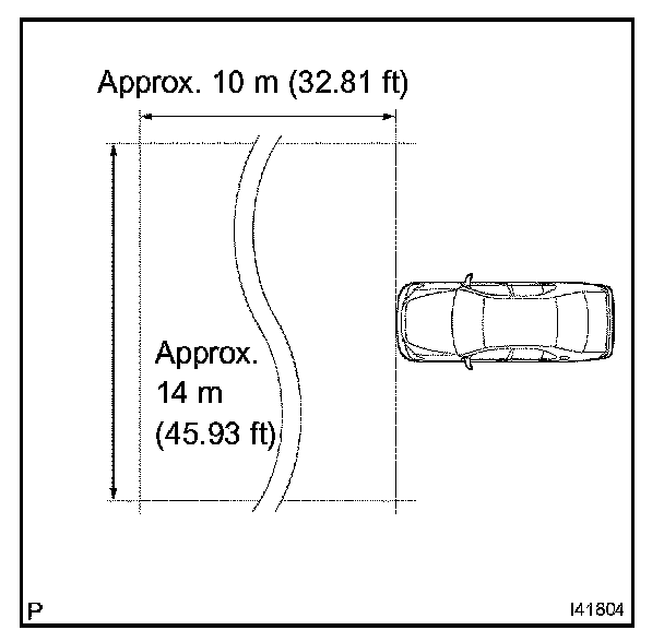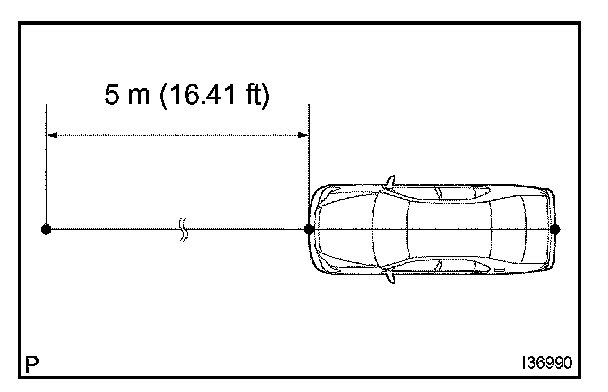 HINT: Fix one end of the string to the rear center mark and move the other end right and left at a point 5 m from the front of the vehicle. Make a 5 m (16.41 ft) mark when the string and the front vehicle center mark intersect.