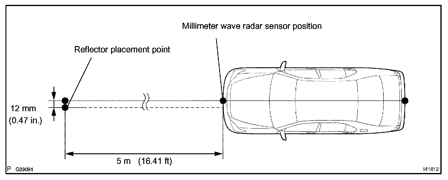 3. From the 5 m (16.41 ft) marked position, measure 12 mm (0.47 in.) to the left and place the reflector there.