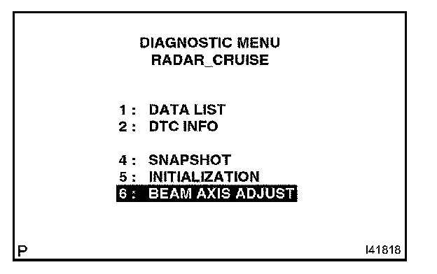 4. Operate by following the screen menu and select "BEAM AXIS ADJUST" of the Radar Cruise Control, then press the "ENTER" key.