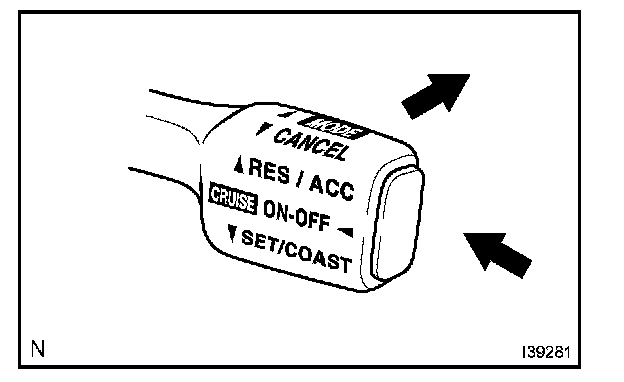 HINT: If the system cannot switch to the constant speed control mode, push the ON-OFF button off once, and perform the same procedures as shown. If a malfunction is still detected in the system, start the engine again and perform the procedure.