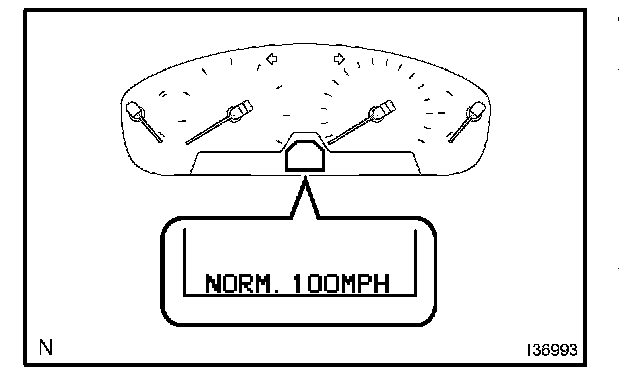 b. After pushing the ON-OFF button on, push the cruise control main switch to MODE for at least 1 second without any other control. Make sure that only "NORM."and nothing else is indicated on the display.