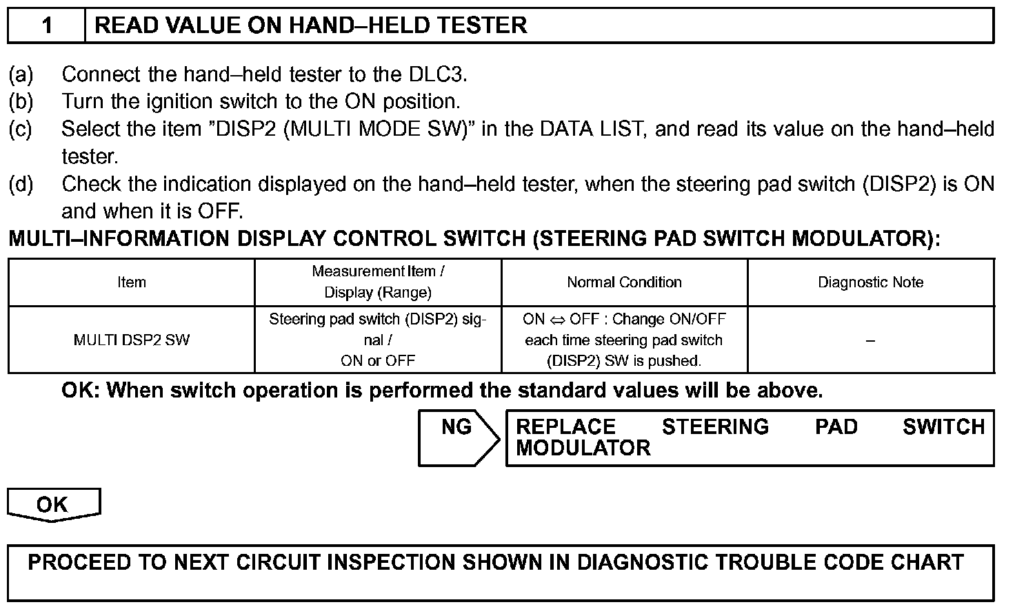 The steering pad switch modulator uses BEAN to communicate with each ECU. Therefore it does not have a direct connection with the ECM. If there are any malfunctions in the communication line of the steering pad switch modulator, one or more DTCs in the multiplex communication system is/are output.