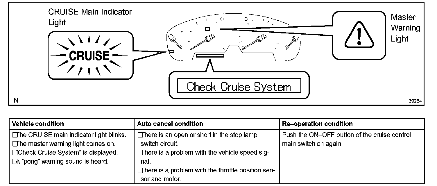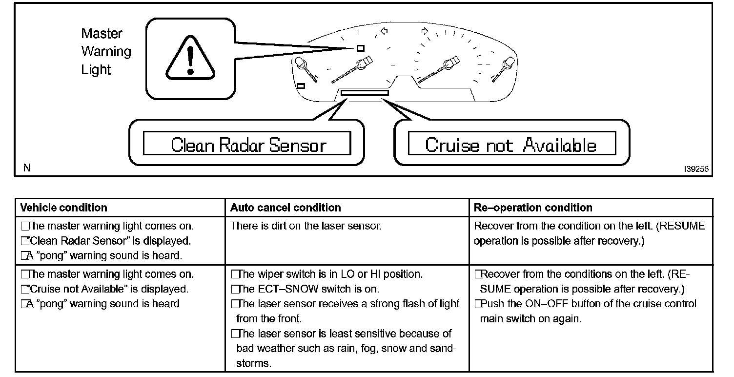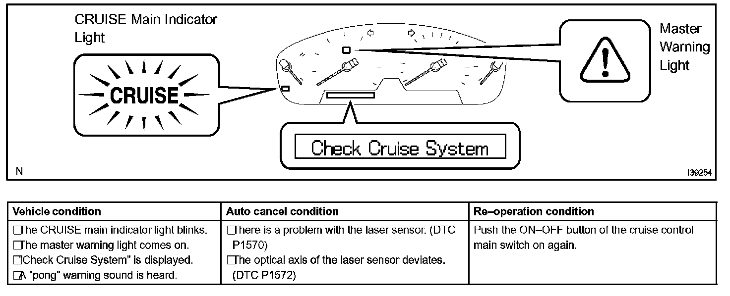 If the following conditions are detected while the dynamic laser cruise control is in operation, the system clears the stored vehicle speed in the ECM and cancels the dynamic laser cruise control operation.