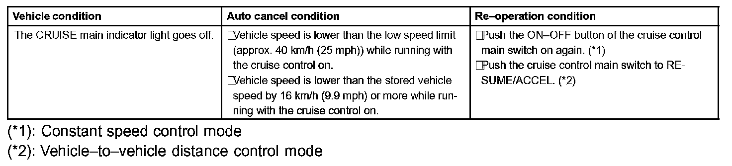 1. Constant speed control mode and vehicle-to-vehicle distance control mode: