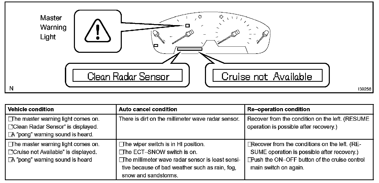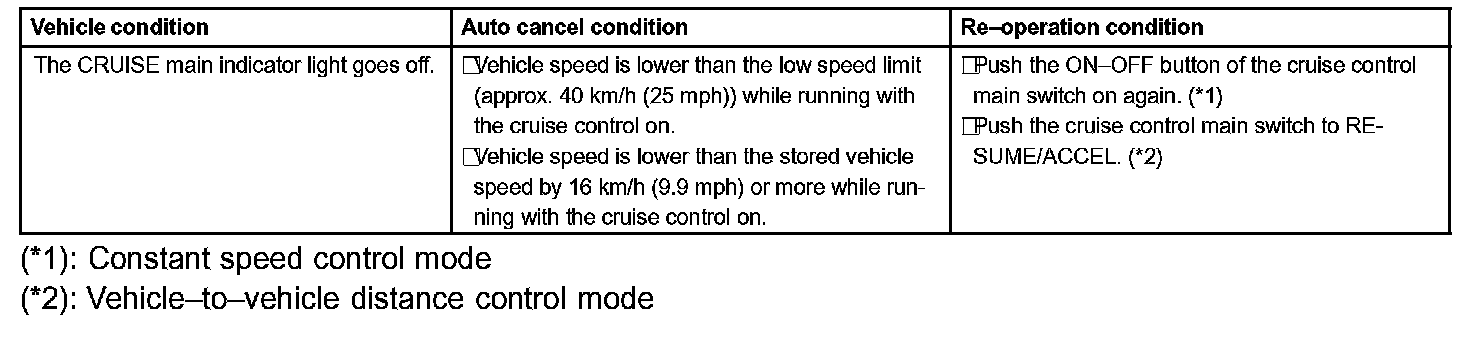 FAIL-SAFE CHART1. Constant speed control mode and vehicle-to-vehicle distance control mode: