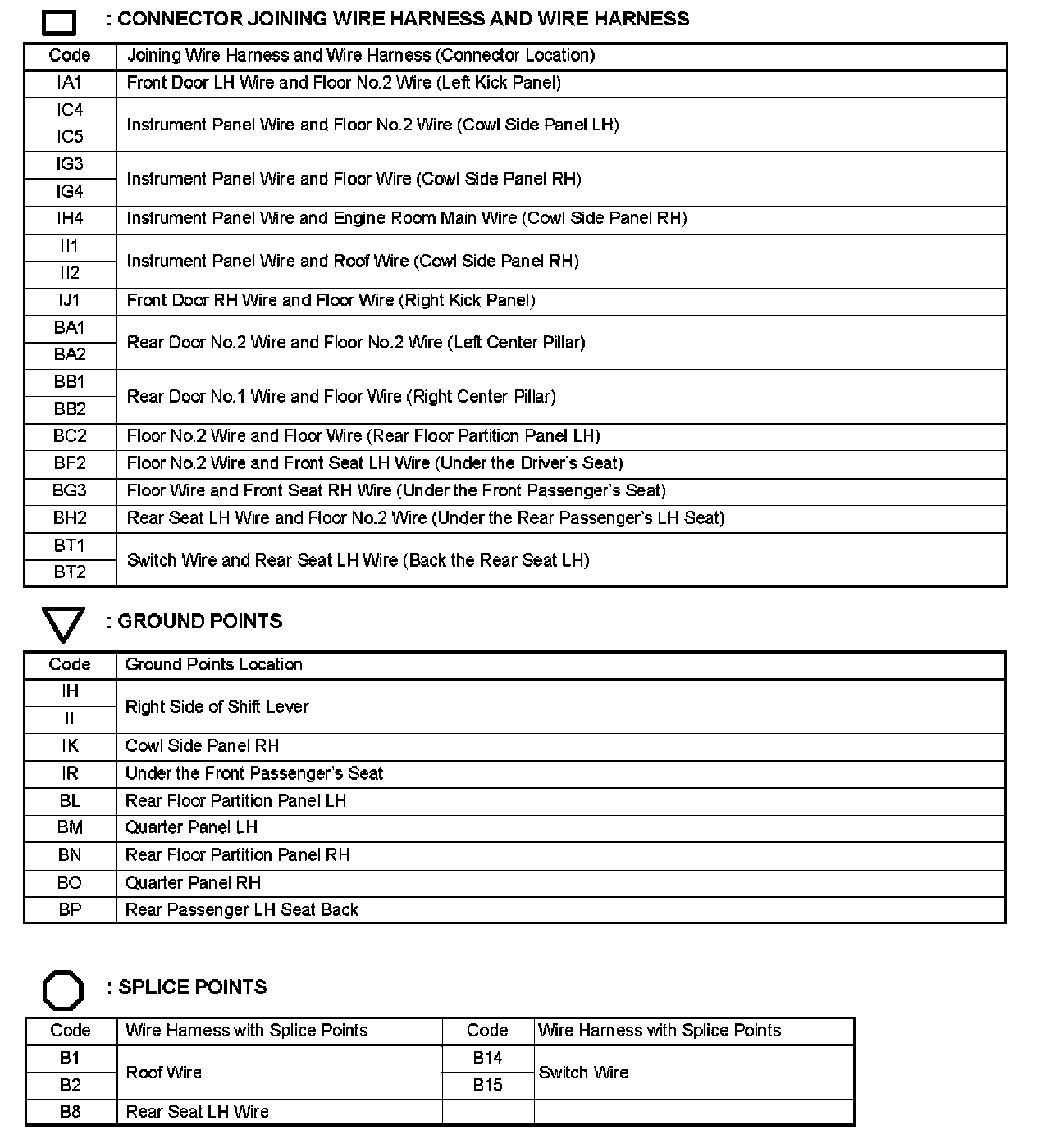 Locations: The locations of components, connectors, ground points, and splices referred to within these diagrams can be found at Vehicle Locations. Locations