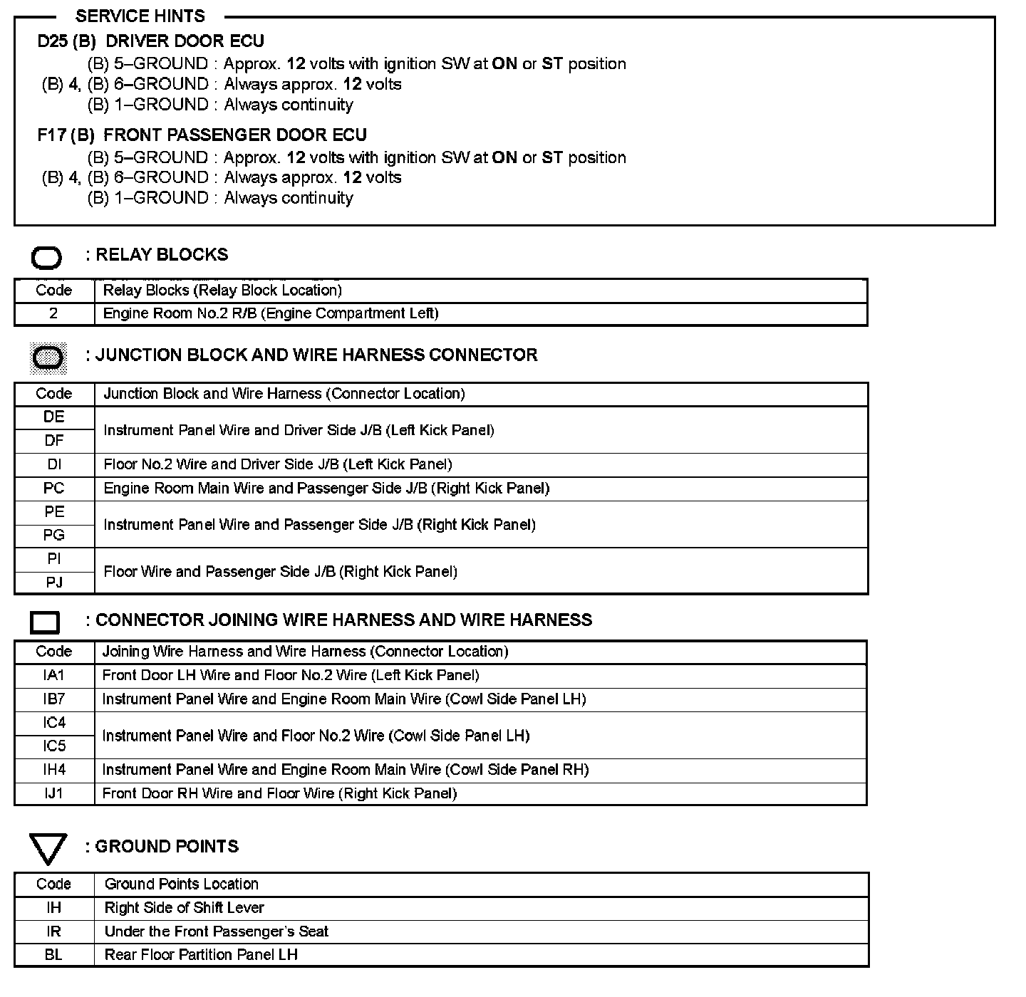 Locations: The locations of components, connectors, ground points, and splices referred to within these diagrams can be found at Vehicle Locations. Locations