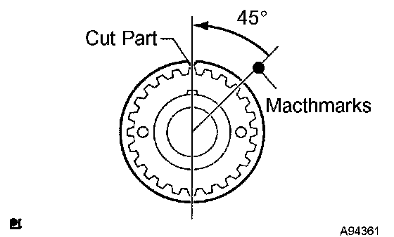 a. Turn the crankshaft timing pulley counterclockwise by 45° and match the cut part with the illustrated position.