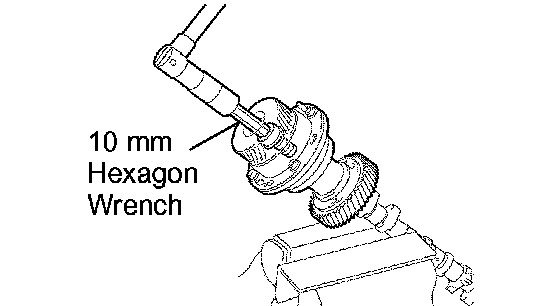 c. Mount the hexagon wrench head portion of the camshaft in a vise.