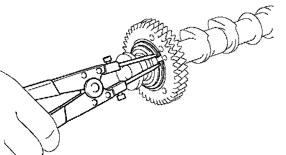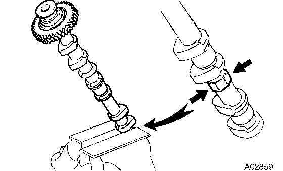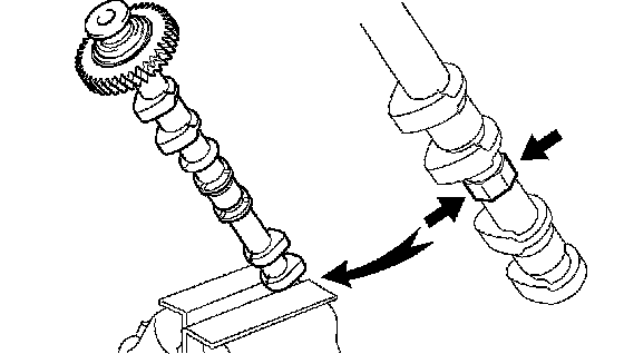^ Do not pry the camshaft with a tool by applying excessive force to it.