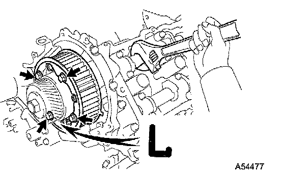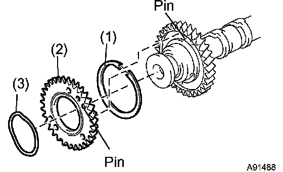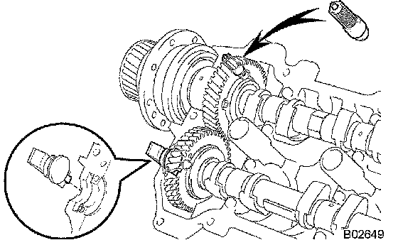 HINT: When removing the camshaft, make sure that the torsional spring force of the sub gear has been eliminated by the above operation.