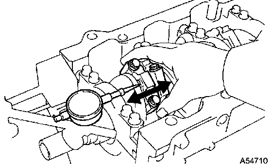 a. Using a dial indicator, measure the thrust clearance while moving the connecting rod back and forth.