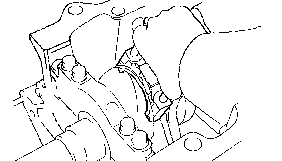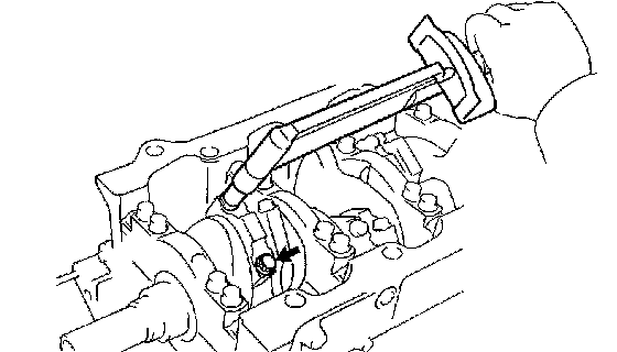 HINT: Be sure to organize the bearing caps, bearings and thrust washers in such a way that they can be reinstalled exactly as before.