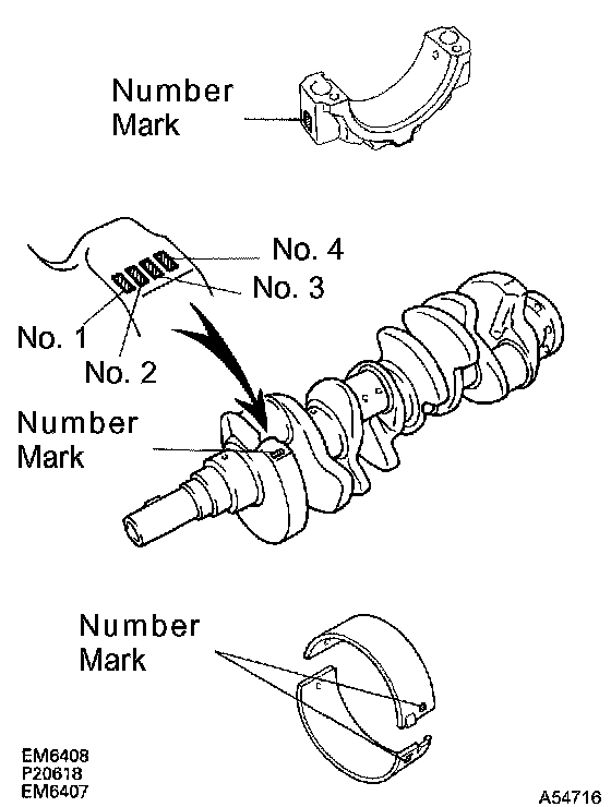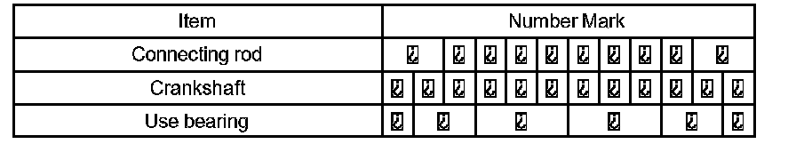 HINT: If using a standard bearing, replace it with one that has the same number. If the number of the bearing cannot be determined, select the correct bearing by adding together the numbers imprinted on the connecting rod cap and crankshaft, then select the bearing with the same number as the total. There are 6 sizes of standard bearings, marked 2, 3, 4, 5, 6 and 7.