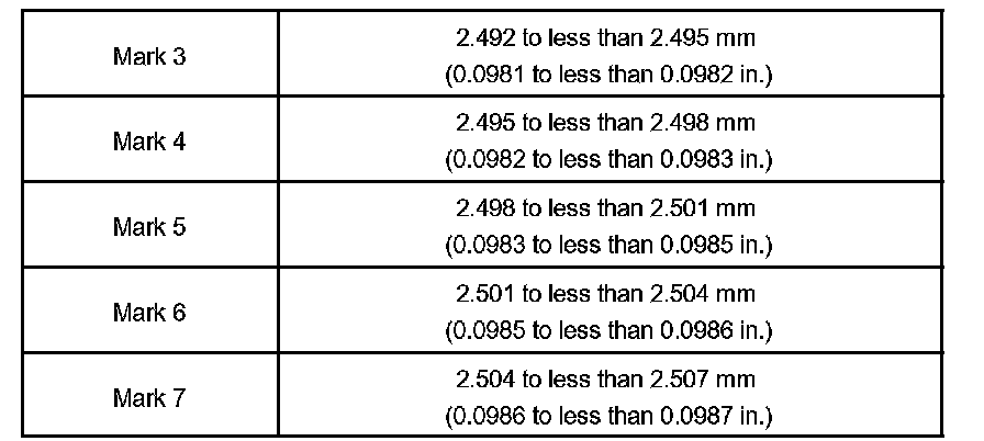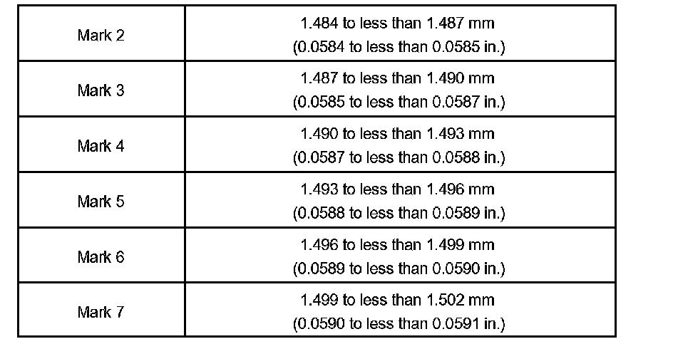Thrust washer thickness: 2.440 to 2.490 mm (0.0961 to 0.0980 inch)