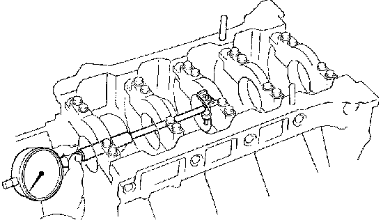 a. Using a dial indicator, measure the thrust clearance while prying the crankshaft back and forth with a screwdriver.