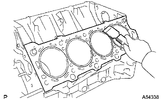 1. Using a gasket scraper, remove all the gasket material from the top surface of the cylinder block.