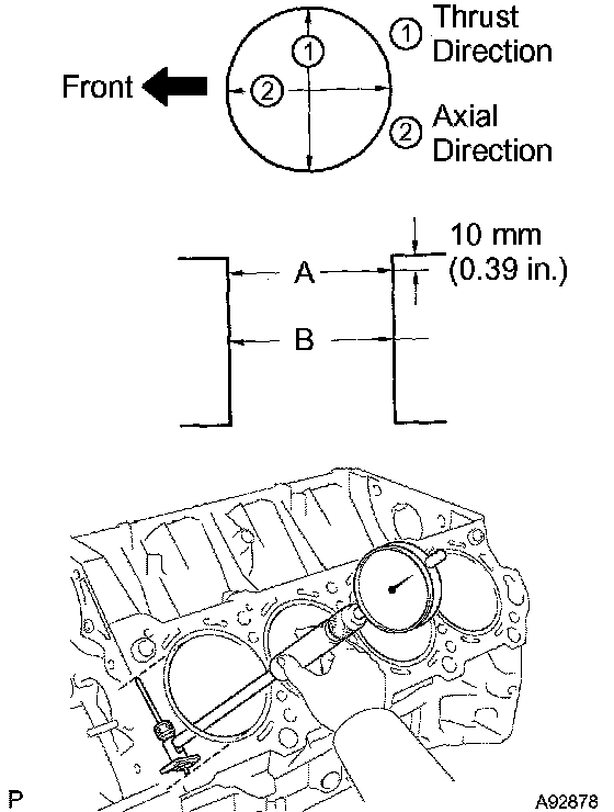 2. Measure the cylinder bore diameter in the thrust directions (see step 8 above).