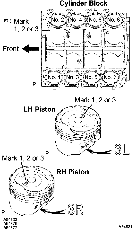 The mark is stamped on the top of the cylinder block. If deep scratches are present, replace the cylinder block sub-assy.