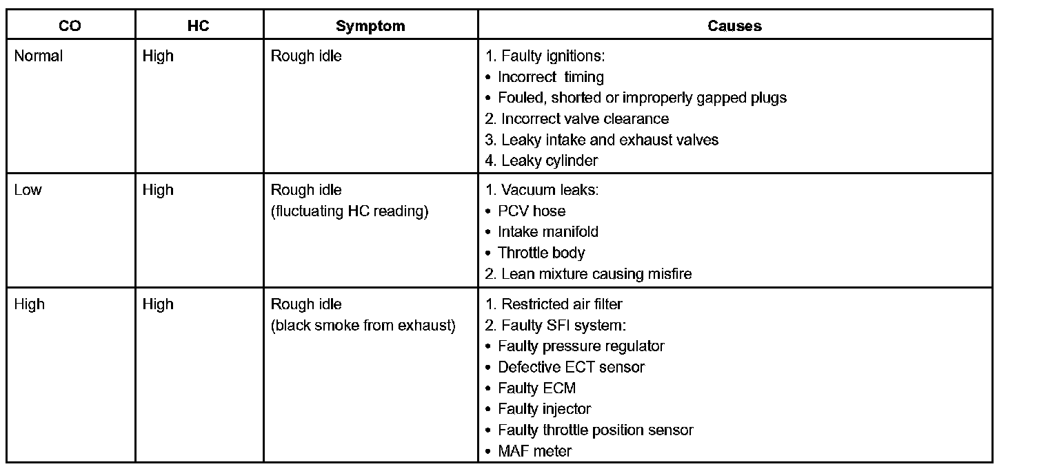 ^ Check regulations and restrictions in your area when performing 2 mode CO/HC concentration testing (engine check at both idle speed and at 2,500 rpm).