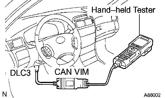1. Connect the hand-held tester (with CAN VIM) to the DLC3.