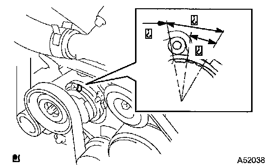 ^ After installing a new belt, run the engine for approximately 5 minutes and then recheck the tension.