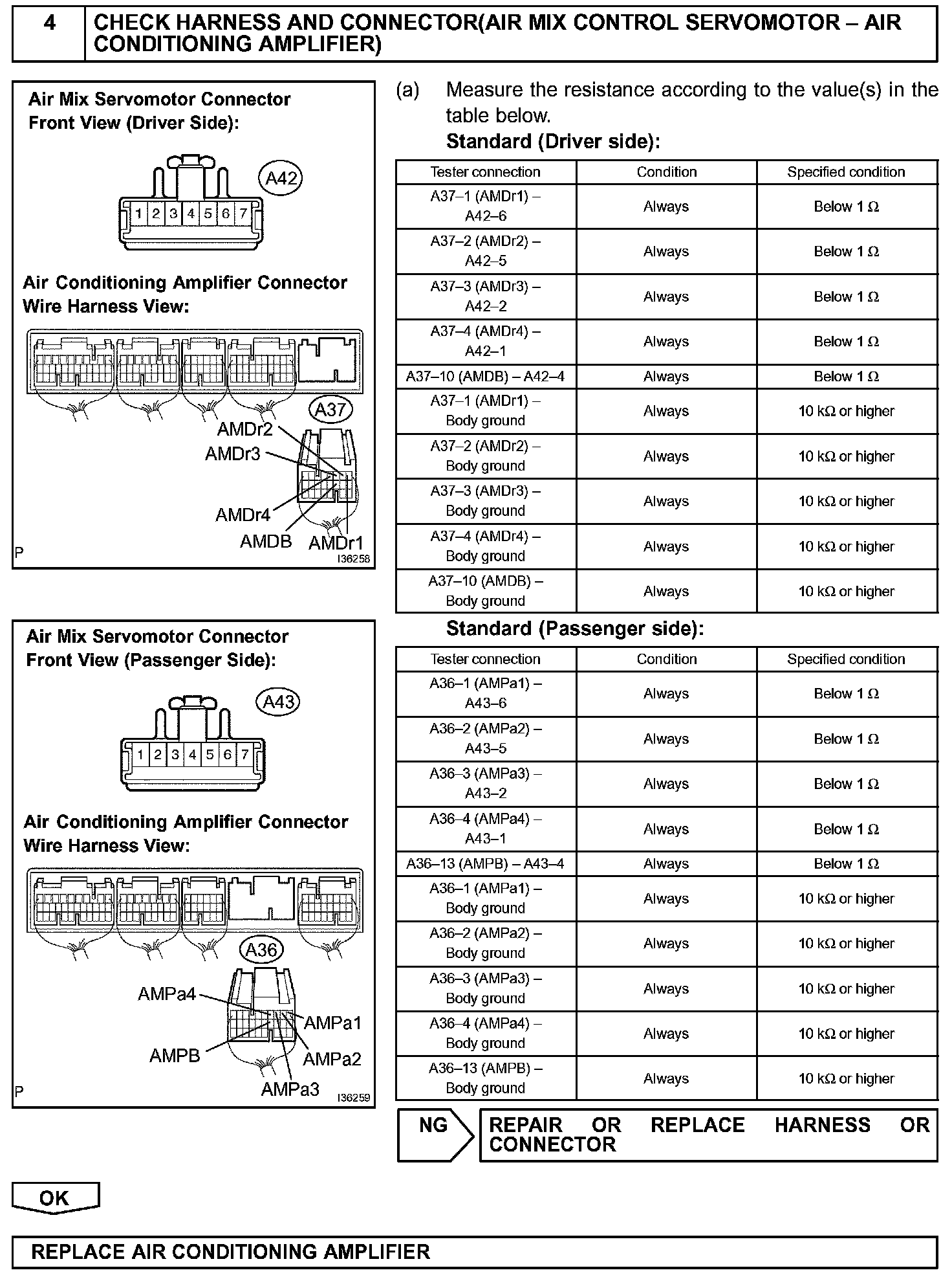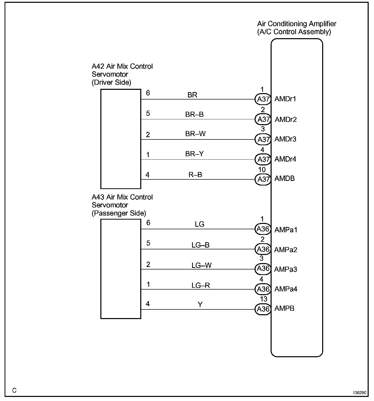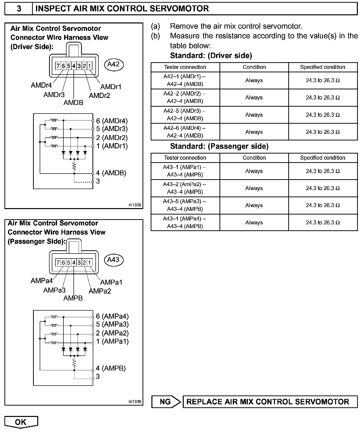 This servomotor is controlled by the A/C amplifier. Air flow temperature changes when moving the air mix damper to the target point. The target point can be detected with the air mix damper position sensor.