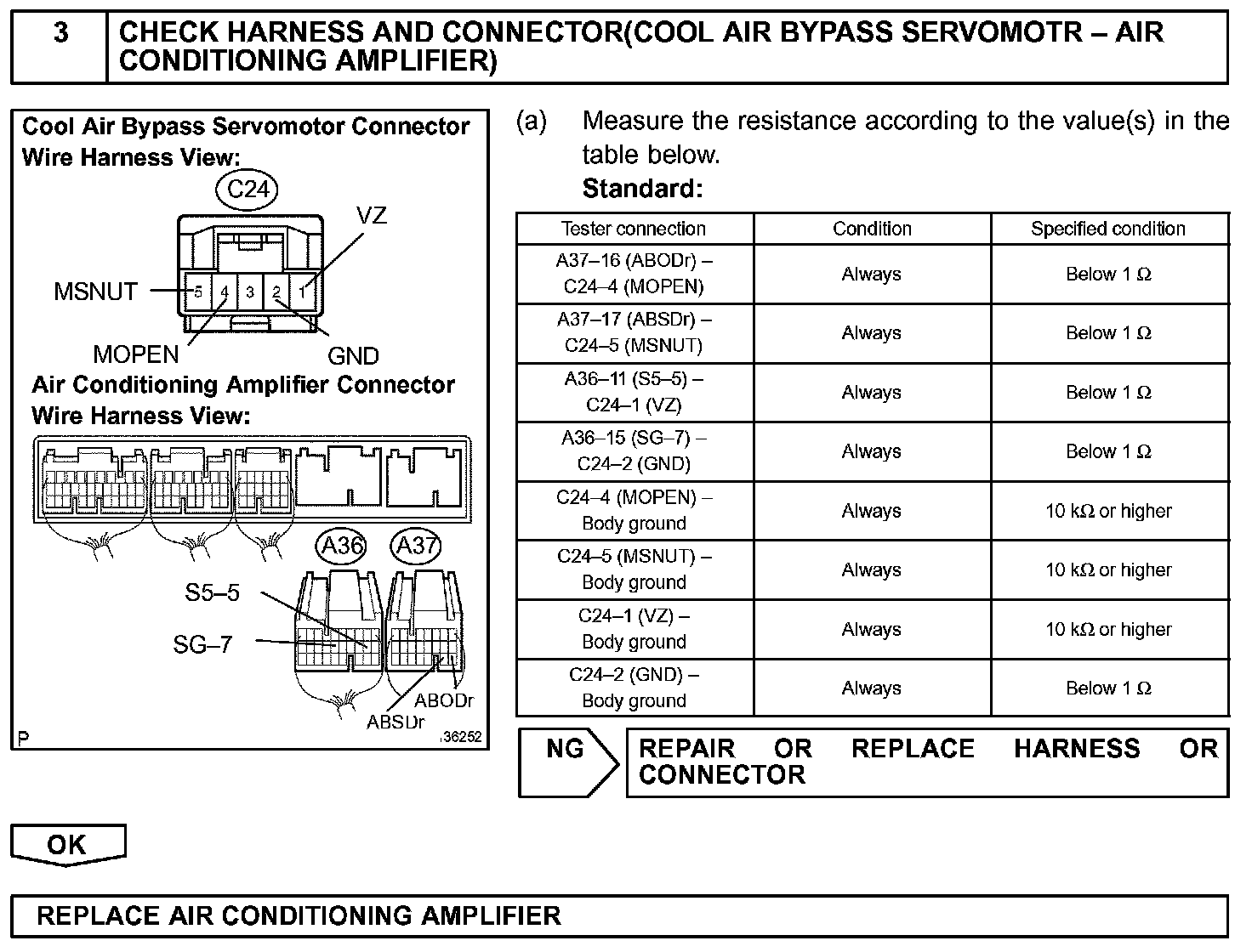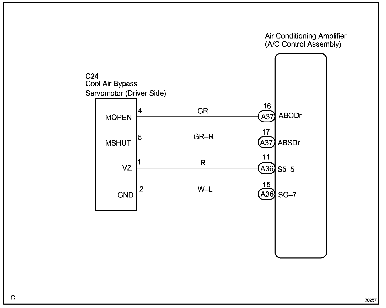 Cool Air Bypass Damper Control Servomotor Circuit (Driver Side)