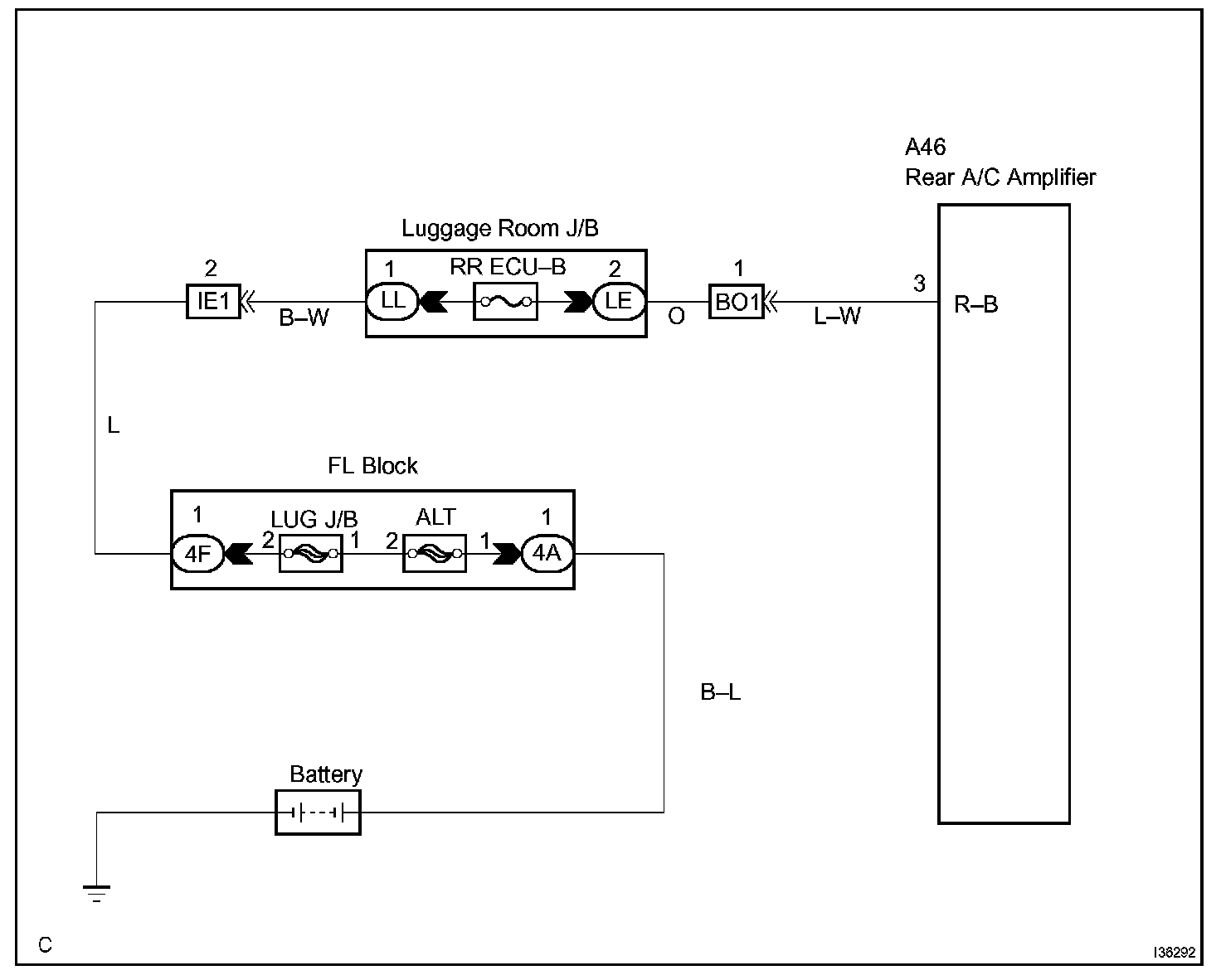 This is the backup power source for the rear A/C amplifier. Power is supplied even when the ignition switch is off and is used for memory, etc.