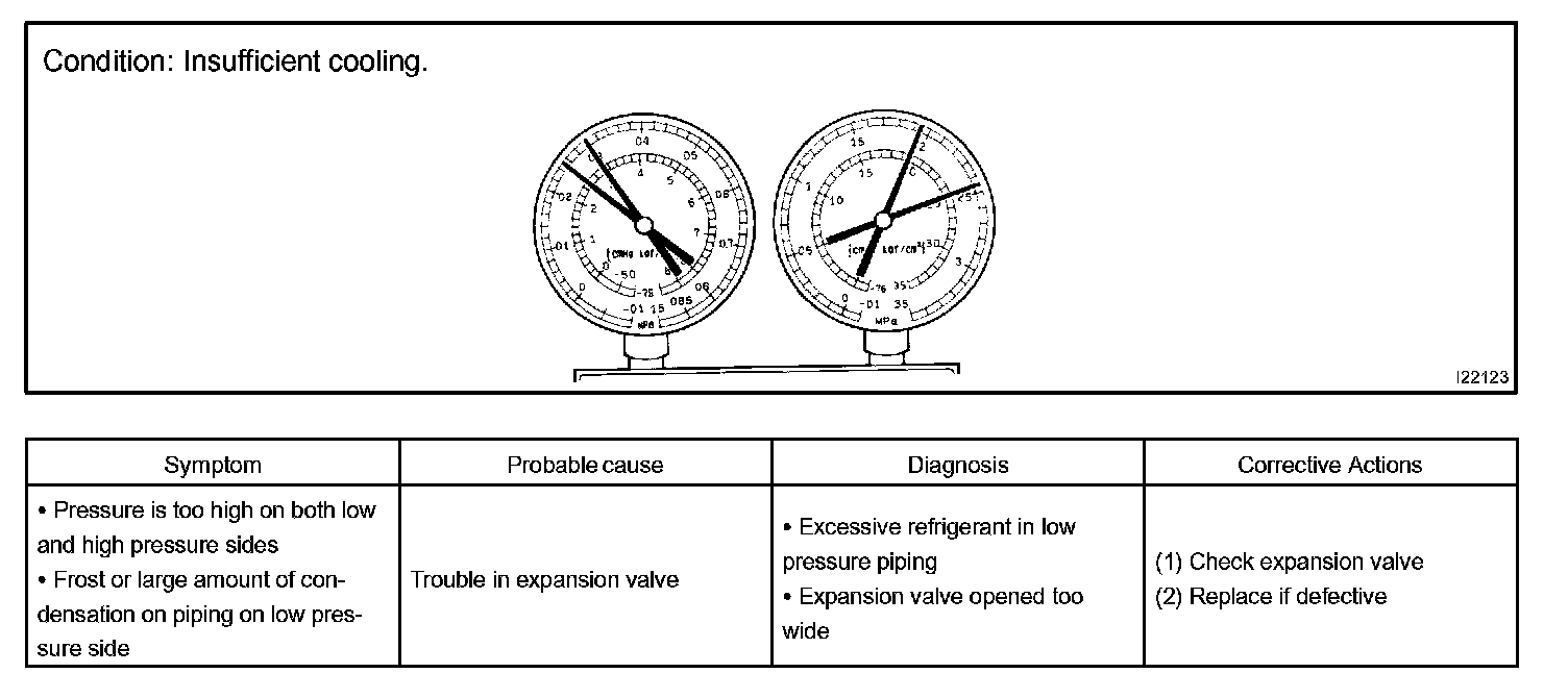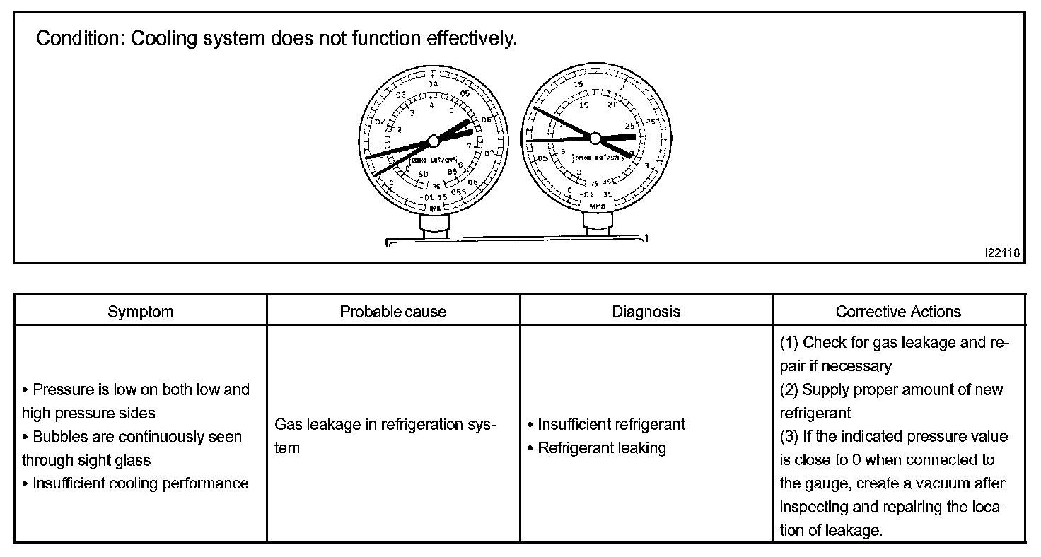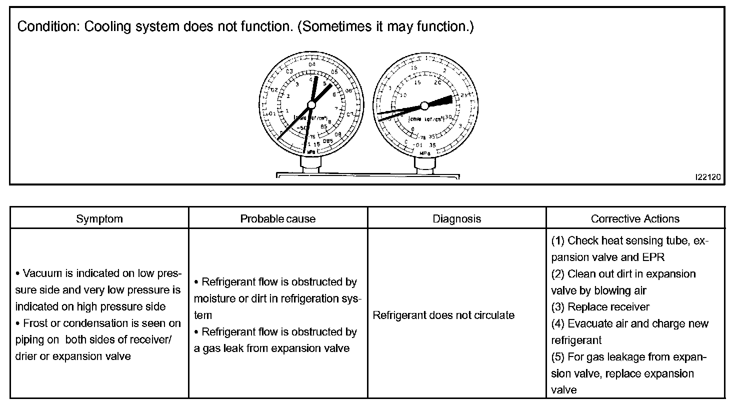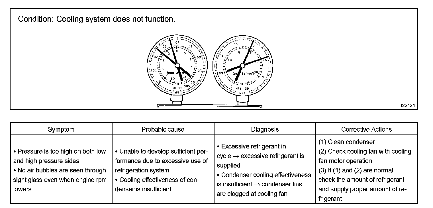a. This is a method in which trouble is located by using a manifold gauge set. Read the manifold gauge pressure when these conditions are established.