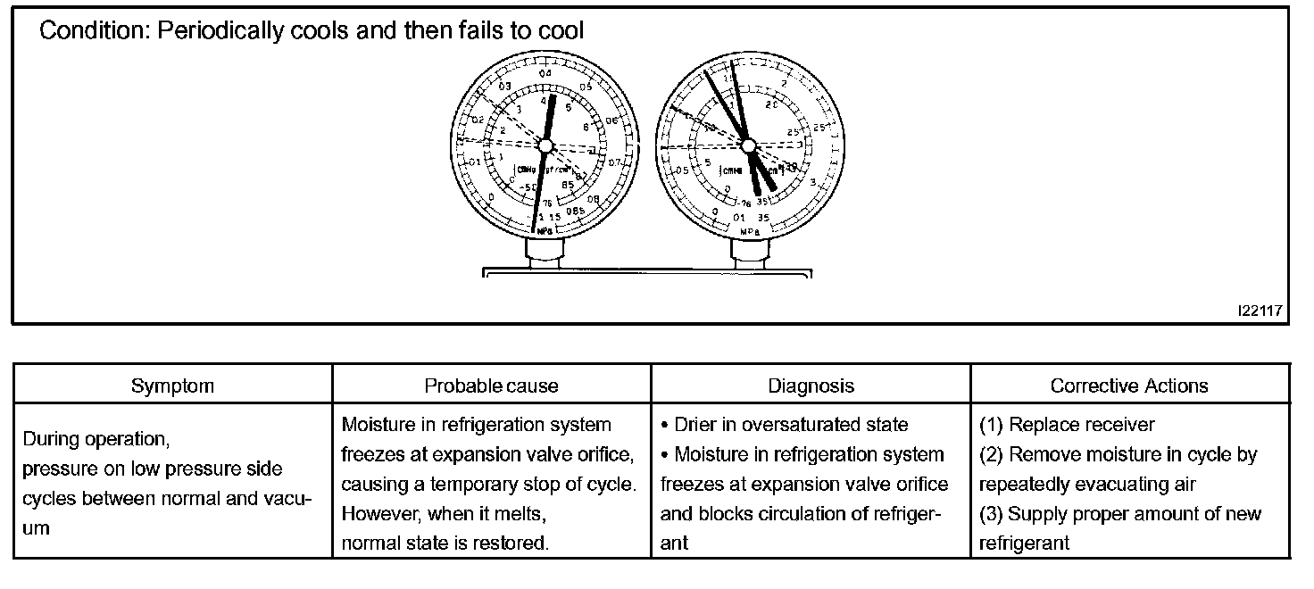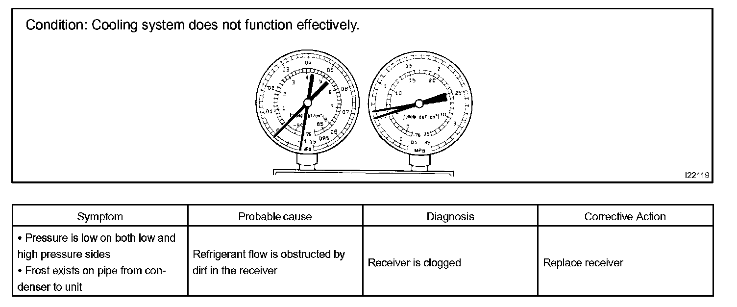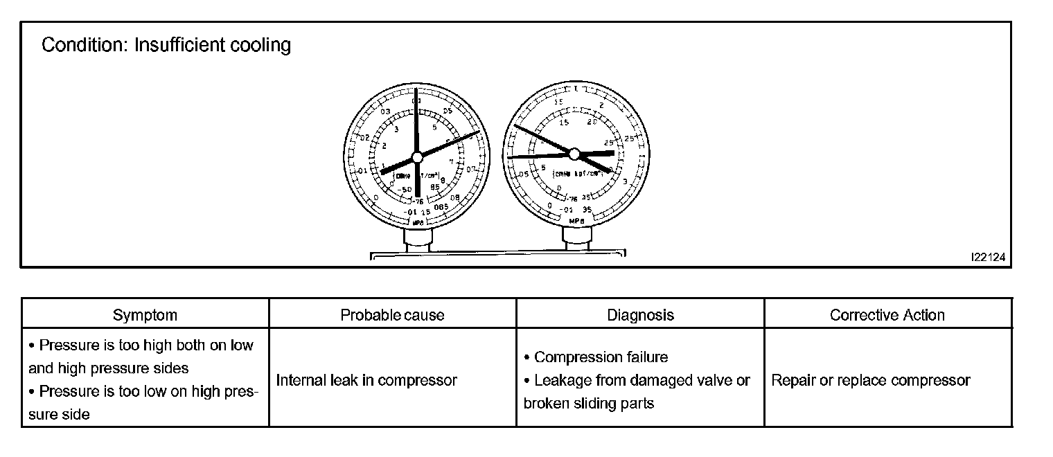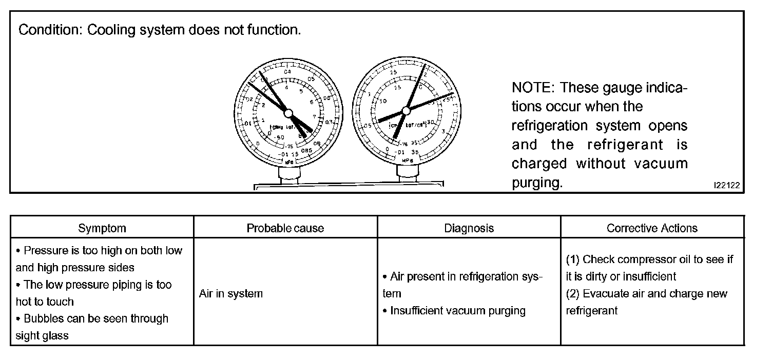 a. This is a method in which trouble is located by using a manifold gauge set. Read the manifold gauge pressure when these conditions are established.